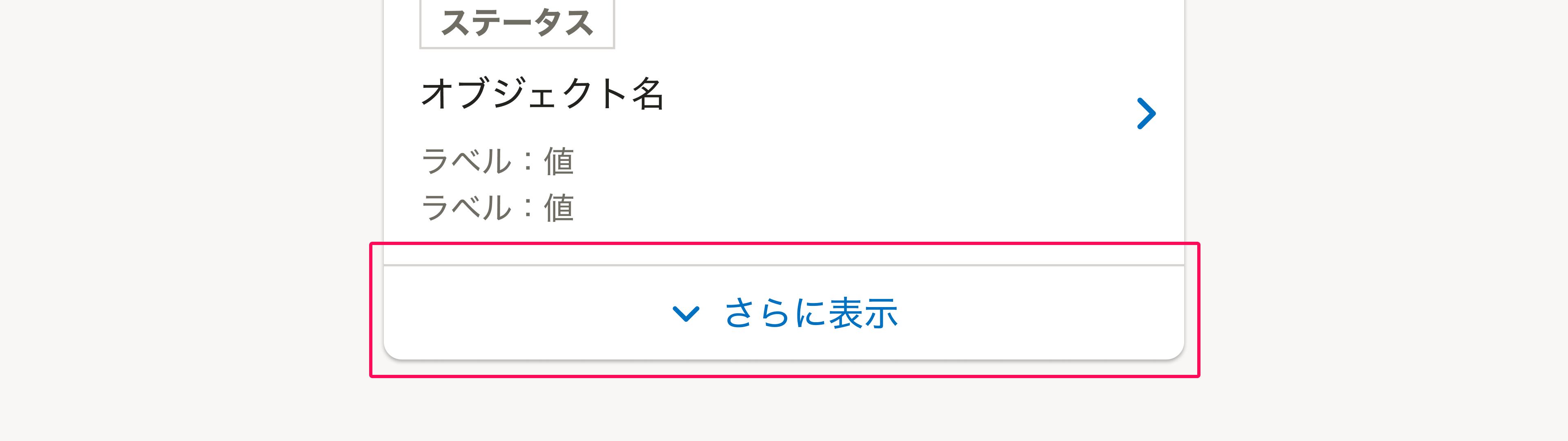 よくあるリストが主に想定しているモバイル環境では表示領域が狭いことから、ステータスに加え、2行分の情報のみ表示できます。(2行に収まる範囲で、3つ以上の情報の表示も可能です。)- オブジェクトの情報にラベルが必要な場合は、